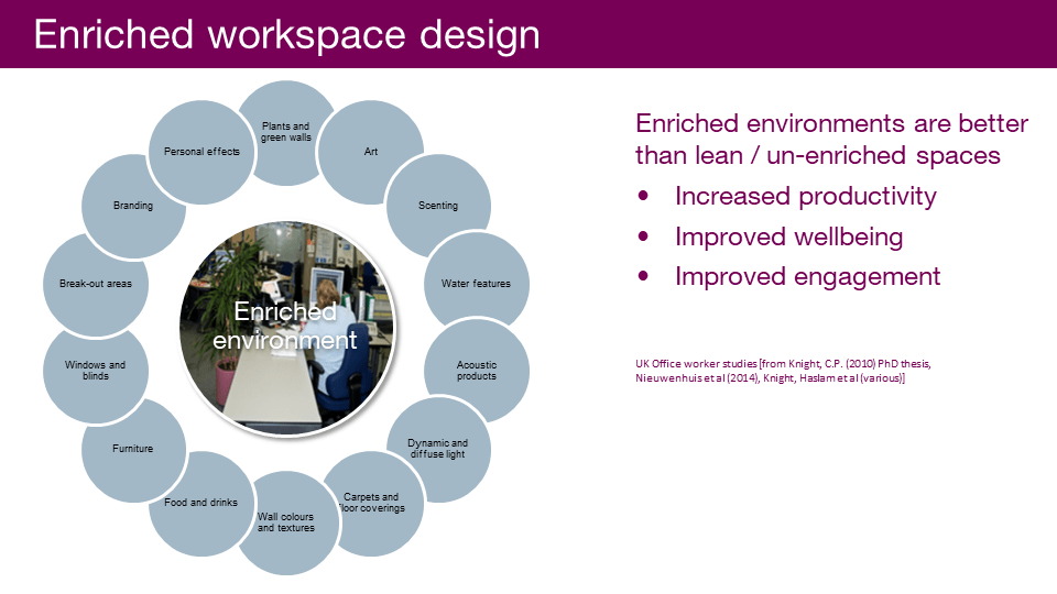 The more you enrich a space, and make it interesting and biophilic, the better.