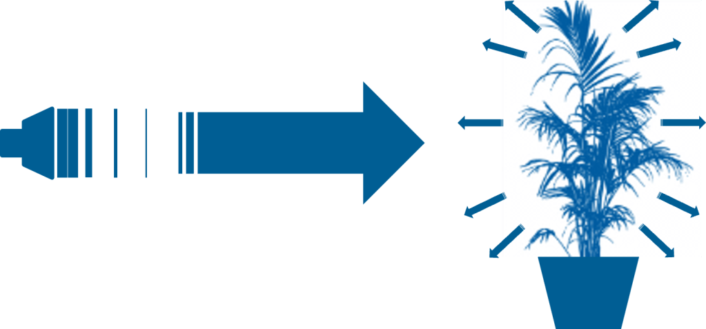 Delivering the water to the roots this way has another benefit – the soil surface remains dry. If the soil surface is dry, then fungus gnats (sciarid flies) have a hard time getting established. Furthermore, a vulcaponic display should include a 2 – 3cm deep layer on the surface as well as around the sides and underneath the rootball. This makes it even harder for soil-dwelling pests to establish.